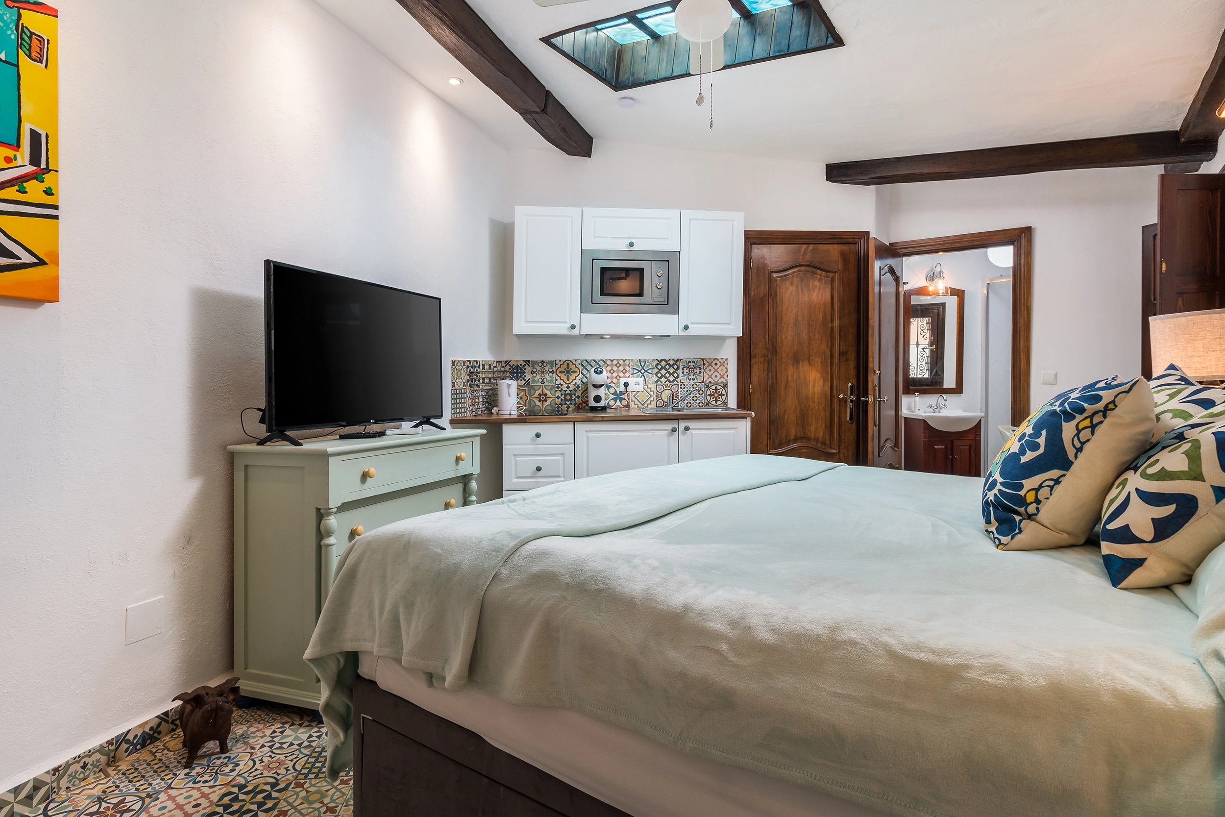 Studio Picasso, originally the barn on the ground floor of Casa Florestos, features an entrance accessed through an arched passageway and a romantic sun roof.